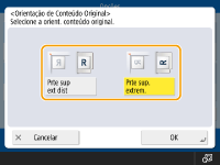 Selecione <Prte sup ext dist> para originais com orientação horizontal ou <Prte sup. extrem.> para originais com orientação vertical.