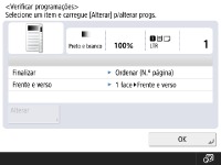 Se você pressionar <Verificar progs>, a lista de configurações especificadas será exibida.