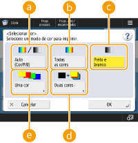 Se um documento em preto e branco for copiado no modo <Todas as cores>, <Uma cor> ou <Duas cores>, ele será considerado uma cópia colorida.