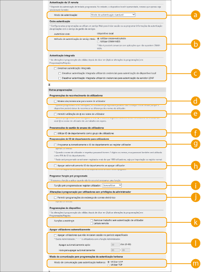 Marque a caixa de seleção como [Utilizar a função de autenticação de utilizadores] e especifique as configurações necessárias.