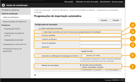 Marque a caixa de seleção como [Utilizar importação automática] e especifique as configurações necessárias.