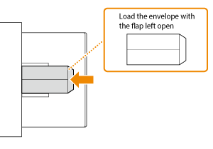 Load the envelopes as indicated below, with the front side of the envelopes (the side without the glued areas) face down (recommended).