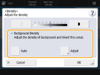 | | You can adjust density of the background. This enables you to make clear copies of originals such as newspapers or originals with colored backgrounds. Adjusting the Density of the Background of Copies |