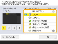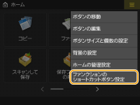 <ホーム>画面に表示されている機能のショートカットを作成することができます。他の機能を操作している途中でもショートカットが表示されていれば、<ホーム>画面に戻ることなく機能を呼び出すことができます。なお、ショートカットを作成するには、管理者としてログインする必要があります。ログインする