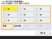 <よく使う設定>に登録した設定は、主電源を切っても消えません。