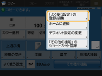 コピー、ファクス、スキャンなどで毎回同じ設定を使う場合や、複雑な設定を控えておきたい場合は、設定内容を「よく使う設定」として登録しておくと、すぐに呼び出すことができて便利です。