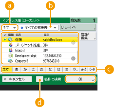 頭文字指定ボタン頭文字を指定して宛先を絞り込むことができます。