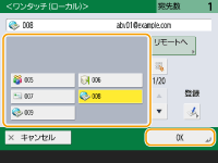 リモートアドレス帳を使うときは、<リモートへ>を押してください。<アドレス帳の切り替え>が表示されている場合は、<アドレス帳の切り替え>