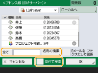 LDAPサーバー内の宛先から検索するときは、<名称で検索>または<条件で検索>を押す