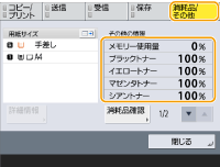 (状況確認)を押して表示される状況確認画面で、トナーの残量などを調べることができます。