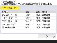 <トナー/回収トナー>画面