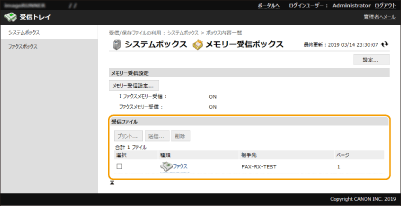 ![]() | 受信トレイに一時保存されているファクス文書/Iファクス文書をリモートUIから印刷、送信、削除することができます。 |