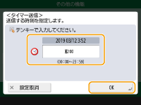 原稿をあらかじめ読み込んでおき、指定した時刻に送信/保存することができます。