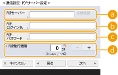 3 | POPサーバー設定をする ![]() <POPサーバー>POP3サーバーの名称(またはIPアドレス)を入力します。 設定後に<POPサーバー>の接続を確認します。 <POPログイン名>POP3サーバーを利用するときは、指定メールアカウントのユーザー名を半角英数字で入力します。 <POPパスワード>POP3サーバーを利用するときは、指定メールアカウントのパスワードを入力します。 <POP発行間隔>POPを自動発行する間隔を分単位で設定できます。 |