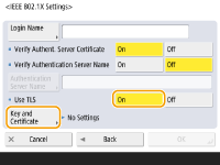 1 | Press <On> for <Use TLS>, and press <Key and Certificate>. |