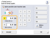L'écran permettant de spécifier le format et le type de papier s'affiche.