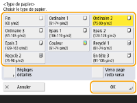 Si le type de papier chargé ne s'affiche pas, appuyez sur <Réglages détaillés> pour le sélectionner dans la liste.
