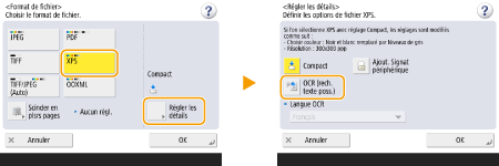 1 | Sélectionnez <XPS> appuyez sur <Régler les détails> <OCR (rech. texte possible)>.![]() |