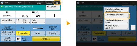 legen Sie die Kopiereinstellungen fest. Bildschirm <Startseite>