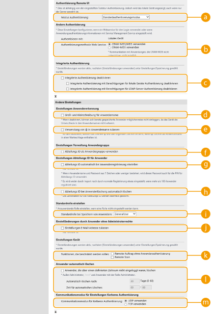 Konfigurieren von detaillierten Einstellungen für Authentifizierungsfunktionen