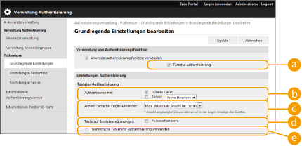 Sie können detaillierte Einstellungen für die Authentifizierungsfunktionen konfigurieren.