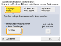 <OK>. Jeder Benutzer kann den Speicherort des persönlichen Ordners angeben.1 | Drücken Sie <Ausgangsordner> <Einstellen>.![]() |
