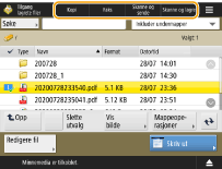 Funksjonssnarveiknappene kan vises på hvert funksjonsskjermbilde. Det er praktisk å registrere ofte brukte funksjoner fordi det gjør at funksjoner kan brukes kontinuerlig uten å gå tilbake til <Hjem>-skjermbildet.
