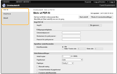og skriver inn passordet i [Dokumentpassord]. Når du skriver ut PDF-filer koblet til policyserveren, velger du [Angi PDF-fil]