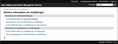2 | Markera kryssrutan för den användargrupp med inställningsinformation du vill ta bort och klicka på [Delete] [Ja]. |