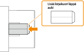 Tässä osassa kerrotaan, miten kirjekuoret lisätään oikeassa suunnassa, sekä toimenpiteet, jotka on suoritettava ennen kirjekuorten lisäämistä. Kuvaus yleisistä toimista, jotka on suoritettava lisättäessä kirjekuoria monitoimitasolle, on kohdassa Paperin lisäämisen perustoiminnot.