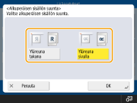 Valitse <Yläreuna takana> vaakasuuntaisille alkuperäisille tai <Yläreuna sivulla> pystysuuntaisille alkuperäisille.