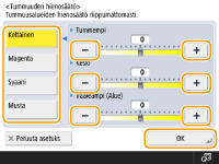 ![]() | Voit säätää erikseen keltaisen, magentan, syaanin tai mustan tummuutta. |