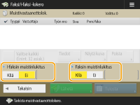 Jos haluat tulostaa kaikki muistissa olevat asiakirjat, valitse <Ei> kohdassa <Faksin muistinlukitus> tai <I-faksin muistinlukitus>. Voit ohittaa vaiheen 5.