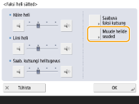 Saate reguleerida faksifunktsioonide helisid, näiteks ühendamise ja tühistamise helid faksi edastamise korral, või faksi kohalejõudmisest teavitav heli, kui see on lõpetanud printimise. Saate määrata ka selle, kas seade teeb häält faksi mäluluku saatmise/vastuvõtmise tulemuse korral.