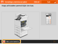 Kuva kohandamiseks, näiteks nuppude ümberpaigutamiseks või kiirklahvide loomiseks vajutage kuval <Avakuva> või põhifunktsioonide kuval klahvi . Puuteekraani kohandamine![]() Saate muuta kuvadega seotud sätteid, näiteks seda, milline teave kuvatakse kohe pärast masina SISSElülitamist ja kas kuvatakse ka info allesoleva paberi- ja toonerihulga kohta. <Kuvamise seaded> Sanuti saate määrata selle, milline kuva kuvatakse siis, kui kasutaja teatud aja jooksul ühtegi toimingut ei tee. <Funktsioon pärast automaatset lähtestust> |