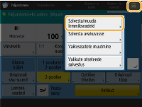Kopeerimis-/skannimisfunktsiooni ja saatmisfunktsiooni puhul saate seadistada masina selliselt, et registreeritud sätete kasutamisel kinnitusekraani ei kuvata.
