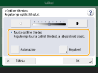 ![]() | Saate kohandada tausta optilise tihedust. Saate edastada selgelt skannitud värvilise taustaga või õhukesel paberil originaale, näiteks ajalehti, mille vastaskülje tähed ja pildid paistavad paberist läbi. Taustavärvi optilise tiheduse reguleerimine |