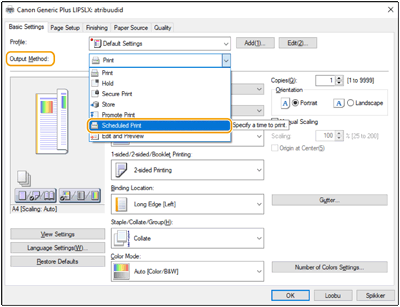 ![]() | Saate määrata printimise alustamise aja, mis on kasulik, kui prindite öösel suurel hulgal dokumente jne. |