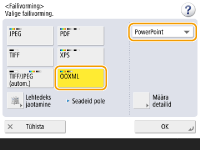 1 | Valige <OOXML> valige <PowerPoint> ripploendist.![]() ![]() OCR keele muutmiseks vajutage <Määra detailid> <Muuda> valige keel vajutage <OK>. |