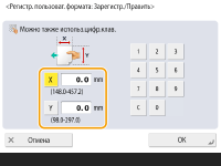 Укажите длину стороны <X> и стороны <Y>. Нажмите кнопку <X> или <Y>, чтобы ввести значение длины каждой стороны с помощью цифровых клавиш.