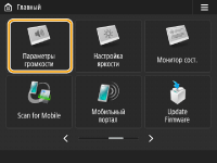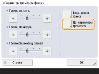 <Громк. монитора>Служит для регулировки громкости звукового сигнала, который воспроизводится при отправке факса. Чтобы отключить этот звуковой сигнал, нажимайте кнопку