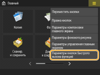 Для функций, представленных на экране <Главный>, можно создавать кнопки быстрого вызова. С помощью таких кнопок функции можно запускать, не возвращаясь на экран <Главный>. Для создания клавиши быстрого доступа необходимо войти в систему аппарата с полномочиями администратора.