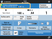 В этой области отображается настроенное значение, например коэффициент масштабирования, формат бумаги и количество копий. Подтвердите параметры, чтобы копирование было выполнено должным образом. Для изменения значений нажмите кнопку, расположенную под этой областью.