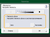 ![]() | Можно настроить плотность фона документа. Можно отправлять четкие оригиналы с цветным фоном или оригиналы, напечатанные на тонкой бумаге, например газеты, при сканировании которых зачастую проступает текст и изображения на обратной стороне. Настройка плотности фона |