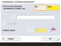Невозможно выполнить непосредственную отправку, если для параметра <Архивировать отправленный документ> установлено значение <On>. Этот параметр автоматически переключается в <Выкл.> в следующих случаях. Укажите адресата повторно или вручную установите для параметра значение <Вкл.> при необходимости. Если адресат для резервных копий был удален из адресной книги Если адресная книга была импортирована из Remote UI (Удаленный ИП) Импорт и экспорт данных о настройке аппарата Если адресная книга была получена из ПО для управления адресной книгой. <Импорт/Экспорт из ПО управления адр. книгой> |