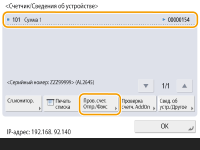 Нажмите <Сл.монитор.> <Проверка связи>, чтобы проверить связь с сервером дистанционного управления и мониторинга. При выполнении этой функции информация с аппарата периодически отправляется на сервер дистанционного управления и мониторинга. Для использования этой функции необходимо включить обмен данными между аппаратом и сервером, предоставляющим данный сервис.Можно распечатать список, в котором указано количество страниц, использованных для копирования, печати, сканирования и факса. На этом экране можно также проверить данные счетчика страниц для каждого приложения AddOn. Нажмите <Проверка счетч. AddOn> на экране шага 2. При нажатии <Свед. об устр./Другое> <Проверка конфиг.устр.> на том же экране будут отображены параметры, заданные на устройстве.Для получения информации об условиях, влияющих на количество, обратитесь к дилеру или сотруднику сервисного центра. |