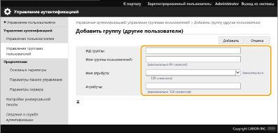 Нажмите кнопку [Добавить группу (локальные пользователи устройства)...] или [Добавить группу (другие пользователи)...].