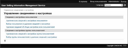 Измененная информация о настройках пользователей вступает в силу при перезапуске аппарата. Удаление старой информации о настройке пользователя может занять некоторое время. Немного подождите и перезапустите аппарат. |