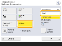 1 | Нажмите <OOXML> и выберите в раскрывающемся списке пункт <Word>.![]() ![]() Чтобы изменить язык, используемый для OCR, нажмите <Задать детали> <Изменить> , выберите язык или группу языков и нажмите <OK>. |