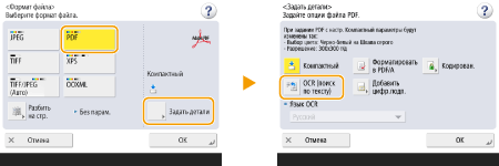 1 | Выберите <PDF> и нажмите <Задать детали> <OCR (поиск по тексту)>.![]() |